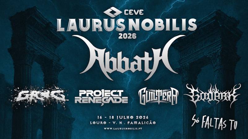 O Ceve Laurus Nobilis Music Fest 2026 começa já a mexer. Depois de confirmadas as datas do evento – de 16 a 18 de Julho – também foram confirmados os primeiros nomes, com Abbath a encabeçar e acompanhado por Grog, Guiltera, Godark e Project Renegade. Os bilhetes estão à venda aqui e aqui.
