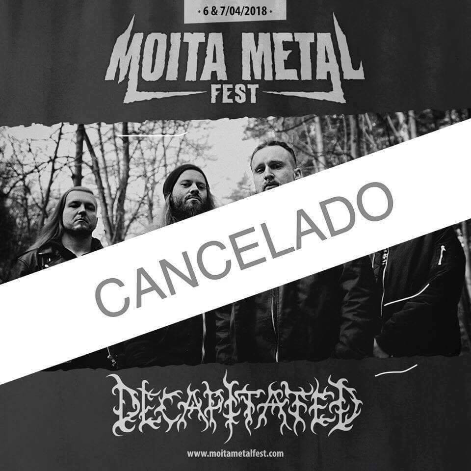 A organização do Moita Metal Fest anunciou no facebook a seguinte declaração que dá conta do cancelamento de uma das bandas cabeças de cartaz, os Decapitated. Abaixo passamos a citar: