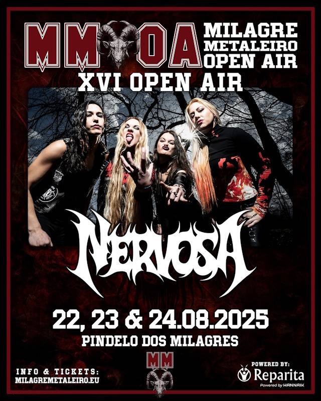 O Milagre Metaleiro é sem dúvida um ponto incontornável para todos os amantes das sonoridades metálicas. A edição Open Air de 2025 continua a fazer elevar as expectativas, agora com as confirmações das Nervosa, Spirit Adrift, Godiva e Aphonic. Quatro nomes bastante distintos mas todos a garantir a qualidade ecléctica esperada. Os bilhetes estão disponíveis aqui.