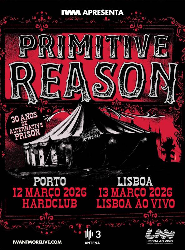 Os Primitive Reason foram uma das bandas mais emblemáticas do underground nacional da década de noventa, impactando vários espectros da cena, do rock alternativo ao metal, passando pelo hip-hop, reggae e ska. Para comemorar os trinta anos do lançamento do primeiro álbum, “Alternative Prison”, vão se reunir para dois concertos muito especiais a 12 de Março no Hard Club, no Porto e 13 de Março no Lisboa Ao Vivo, numa produção da I Want More Live.
