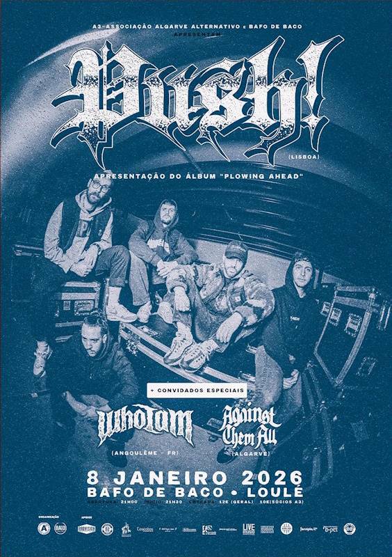 Os Push! vão regressar ao Algarve a 8 de Janeiro para aquele que se antecipa um grande concerto, aproveitando para promover o seu novo álbum “Plowing Ahead”, que será lançado a 9 de Janeiro. Bafo de Baco, em Loulé, é local escolhido para um evento da A3 – Associação Algarve Alternativo e vamos ter ainda na abertura, Who I Am, e Against Them All, ambos a estrearem-se na mítica sala algarvia.