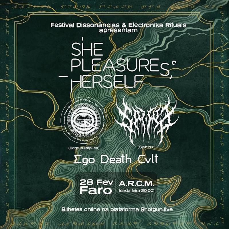 No próximo dia 28 de Fevereiro, vai ter lugar no ARCM uma noite de contrastes sonoros, onde o acústico e o eletrónico colidem e onde a harmonia cede lugar à dissonância hipnotizante. O palco da ARCM, em Faro, será um portal para uma experiência sonora que transcende géneros e dimensões. Os She Pleasures Herself vão ser os cabeças de cartaz de um evento organizado pelo Festival Dissonâncias e Elektronica Rituals e que conta ainda com os Corpus Replica, Sphinx e Ego Death Cvlt. Os bilhetes estão à venda através deste link.