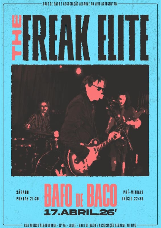 É já esta sexta-feira, dia 17 de Abril que o Bafo de Baco vai receber os britânicos The Freak Elite, sendo esta uma oportunidade única para ver a banda britânica numa das salas mais acolhedoras do Algarve. As portas abrem às 21h:30 e o início está apontado para as 22h:30.