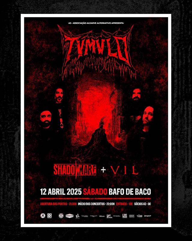 Os Tvmulo vão regressar ao Sul para uma grande noite de death metal no Bafo de Baco para promover o seu mais recente álbum “Portals Of Terror” em mai um evento da A3 – Associação Algarve Alternativo. E a acompanhar a banda de Viseu, duas grandes bandas algarvias: Shadowmare e Vil. A abertura das portas está apontada para as 21h30 e o início das hostilidades para as 22h. Os bilhetes custam 8€ para sócios e 10€ para público em geral.