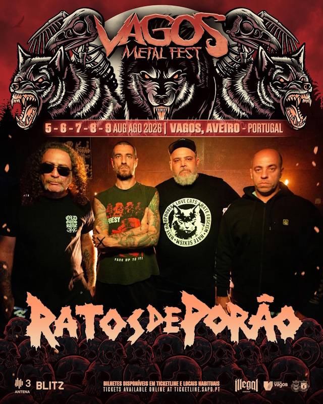 Para terminar o ano em beleza e para ficarmos com a certeza daquilo que já era bastante óbvio – que o Vagos Metal Fest tem o melhor cartaz de sempre desde sempre (até mesmo desde o tempo da outra senhora) – forma confirmados os Ratos de Porão, a mais mítica das bandas de punk/hardcore/crust do Brasil e bastante acarinhada pelo público português. O Vagos Metal Fest vai decorrer nos dias 5 a 9 de agosto de 2026 e os bilhetes diários e passes gerais já estão disponíveis para compra aqui.