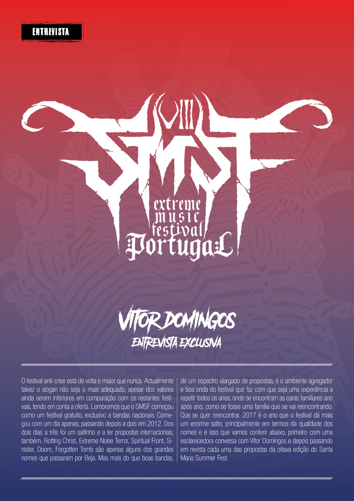 EntrevistasExclusivoUncategorized Vitor Domingos / SMSF – Entrevista Junho 6, 2017 Support World Of Metal Become a Patron! World Of Metal Magazine – Agora Grátis/Now Free! Buy CDs in our store