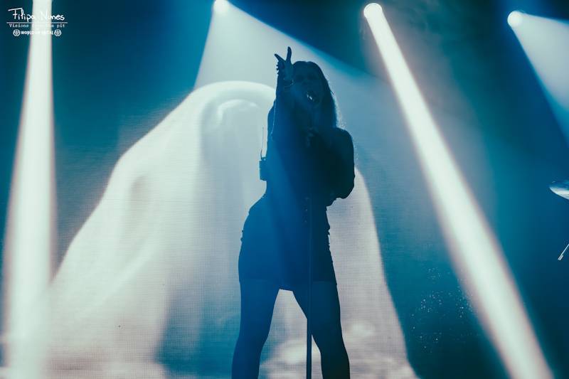 O público estava totalmente rendido desde o primeiro minuto, e uma sala totalmente cheia e com vontade de cantar e apoiar a banda criou um ambiente impressionante de comunhão. Depois do momento ambiental de “Lua D’Inverno” essa união entre banda e público surgiu de forma bem energética e audível com o folk de dois temas que chamam por celebração, “Trebaruna” e “Ataegina”, com sala a cantar em coro, e a saltar em conjunto, num dos melhores momentos da noite. Por esta altura dizer que a prestação dos Moonspell ao vivo é boa é algo redundante. A banda continua sempre a manter uma grande consistência e qualidade, com Fernando Ribeiro a aproveitar a ocasião para contar algumas das histórias dos tempos de “Wolfheart”. A viagem continuaria com um tema que normalmente não falta em concertos dos Moonspell, “Vampiria”, passando pelo ambiente gótico de “An Erotic Alchemy” e terminando com mais um dos temas incontornáveis “Alma Mater”, cantado em peso por toda a alcateia que se juntou no LAV.