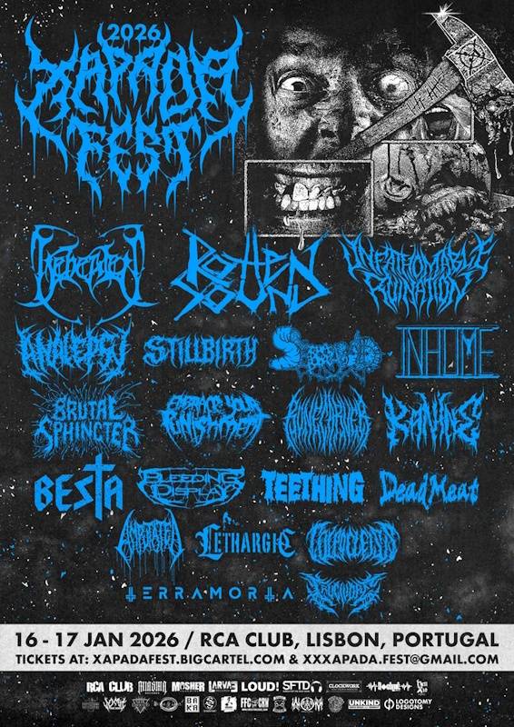 O Xapada Fest já revelou o cartaz para a próxima edição, que terá lugar no início do próximo ano, a 16 e 17 de Janeiro de 2026, no RCA Club. O cartaz de absoluto delírio extremo e brutal conta com Beheaded, Rotten Sound, Unfathomable Ruination, Analepsy, Stillbirth, Serrabulho, Inhume, Brutal Sphincter, Embrace Your Punishment, Bonecarver, Kanine, Besta, Bleeding Display, Teething, Dead Meat, Amputated, Lethargic, Colpocleisis, Terramorta e Crucivore. Poderão comprar os bilhetes em xapadafest.bigcartel.com ou através do email xxxapada.fest@gmail.com. Os early birds estão disponíveis por 65€ até ao final deste mês de Agosto.